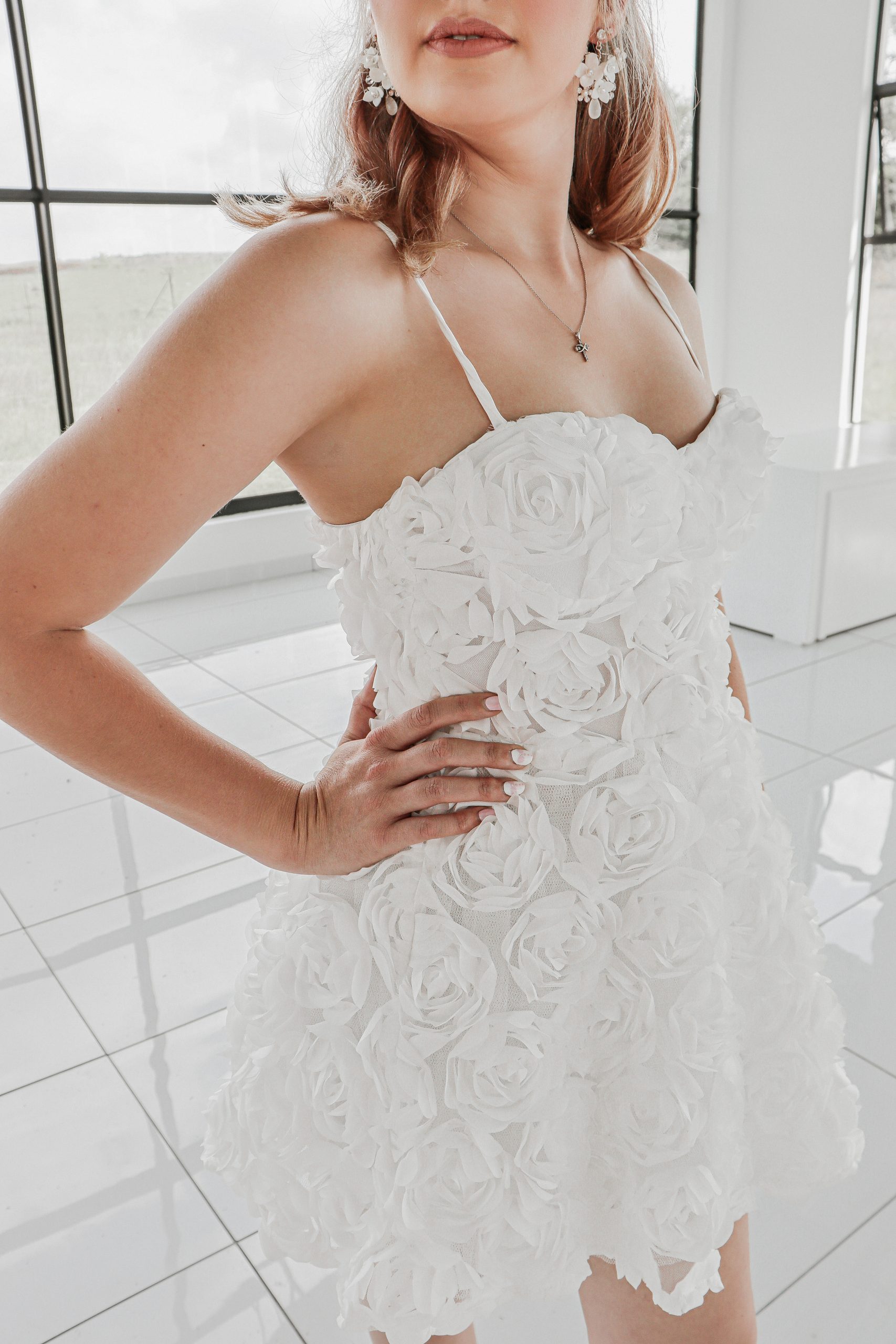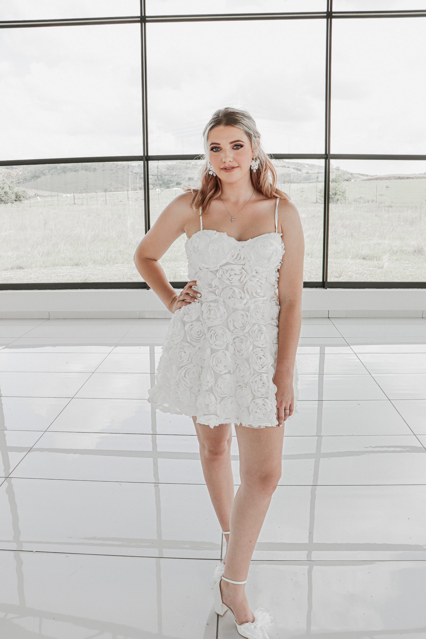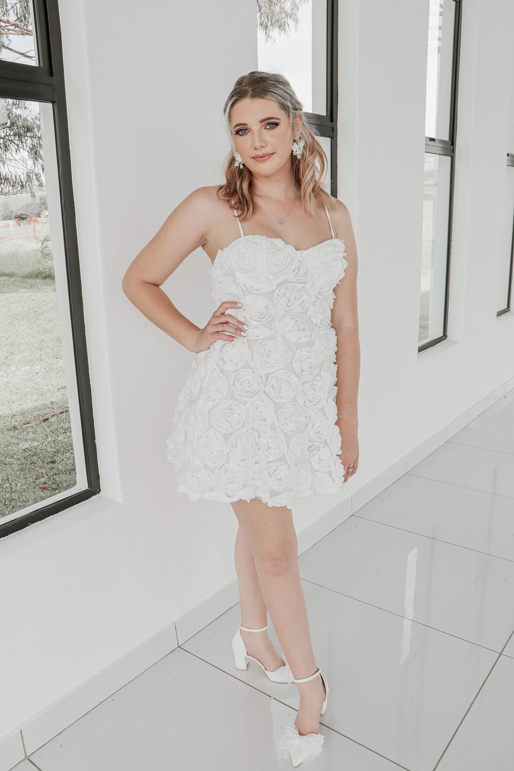 This playful yet elegant reception dress is adorned with soft, 3D floral appliqués that create beautiful texture and depth. The delicate detachable straps and flattering sweetheart neckline keep the look light and feminine. Chic, modern, and full of romantic detail, this dress is perfect for the bride who wants a fresh, fun look for celebrating the night away!